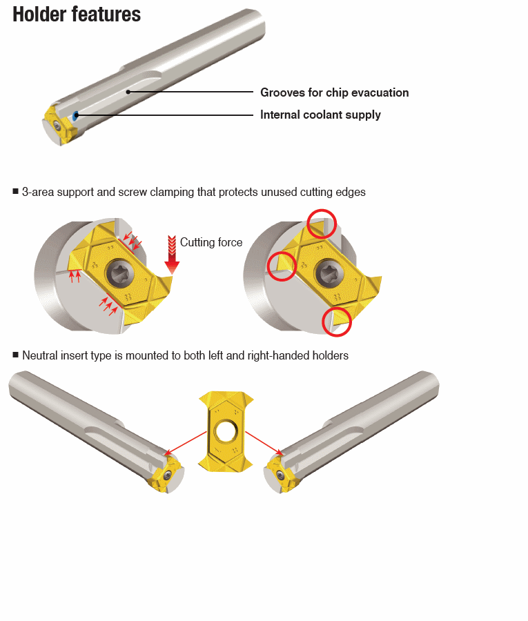: Boring bars for internal shallow grooving on small diameter with coolant hole & TQIS 14-4 corner inserts