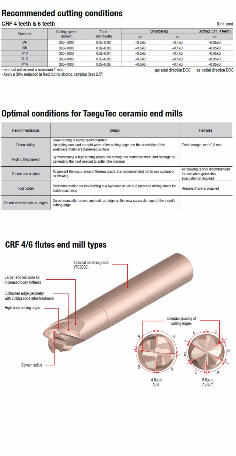 : 4 Flute Ceramic end mills with corner R and unequal spacing of cutting edges for machining of superalloys and less vibration in slotting and shouldering