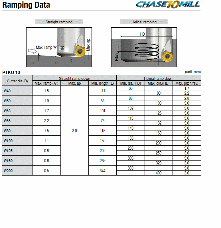 : High feed end mills with PTKU 10 inserts of 10 cutting edges & T-FLEXTEC modular adaptation in max. ap 3.0 mm