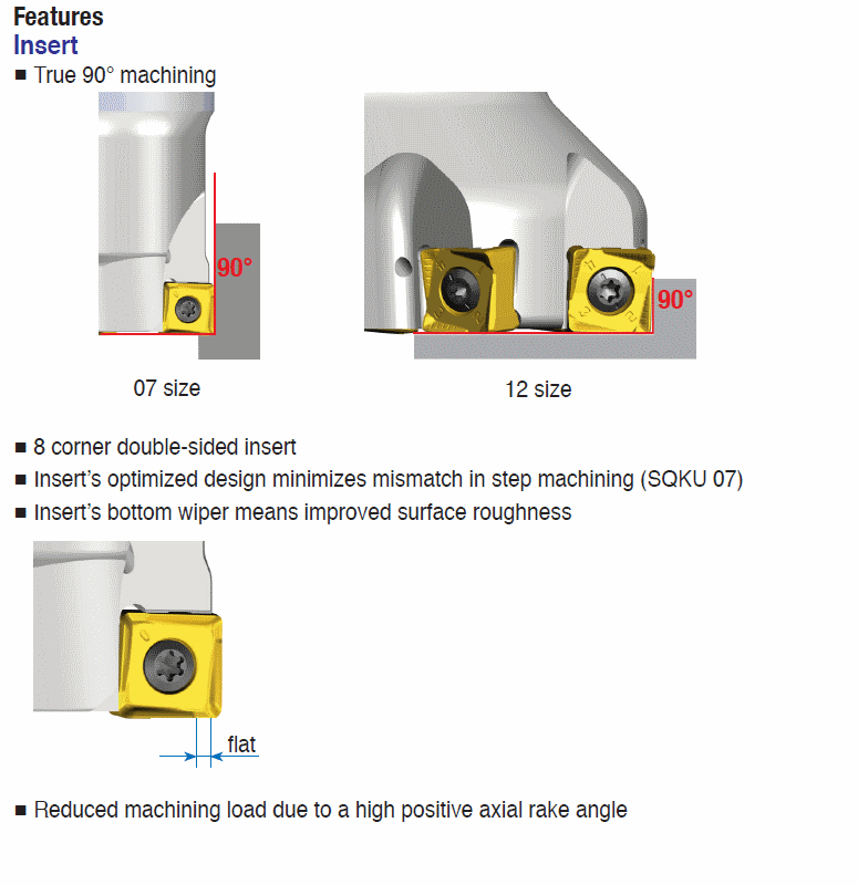 : Double-sided Ground square inserts of economical 8 cutting edges for 90° shoulder milling for cast iron machining
