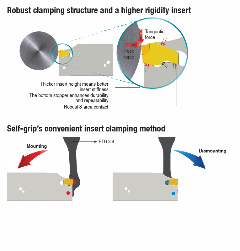 : External holders with SFC/J rigid single-ended inserts for parting & deep grooving