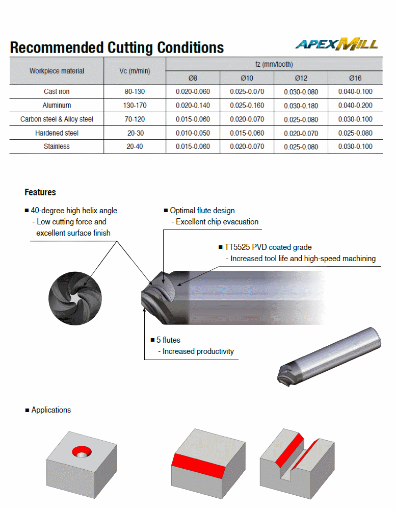 TaeguTec Cutting Tools - Metal Working Tools - Milling & Solid End mills - Inserts - HCEM 5 (5 flutes)