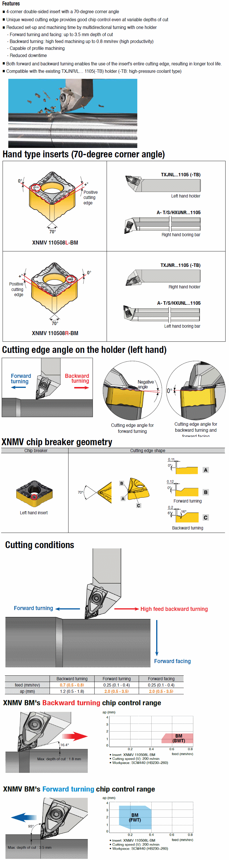 TaeguTec Cutting Tools - Metal Working Tools - Turning - Inserts - XNMV 1105..R/L-BM