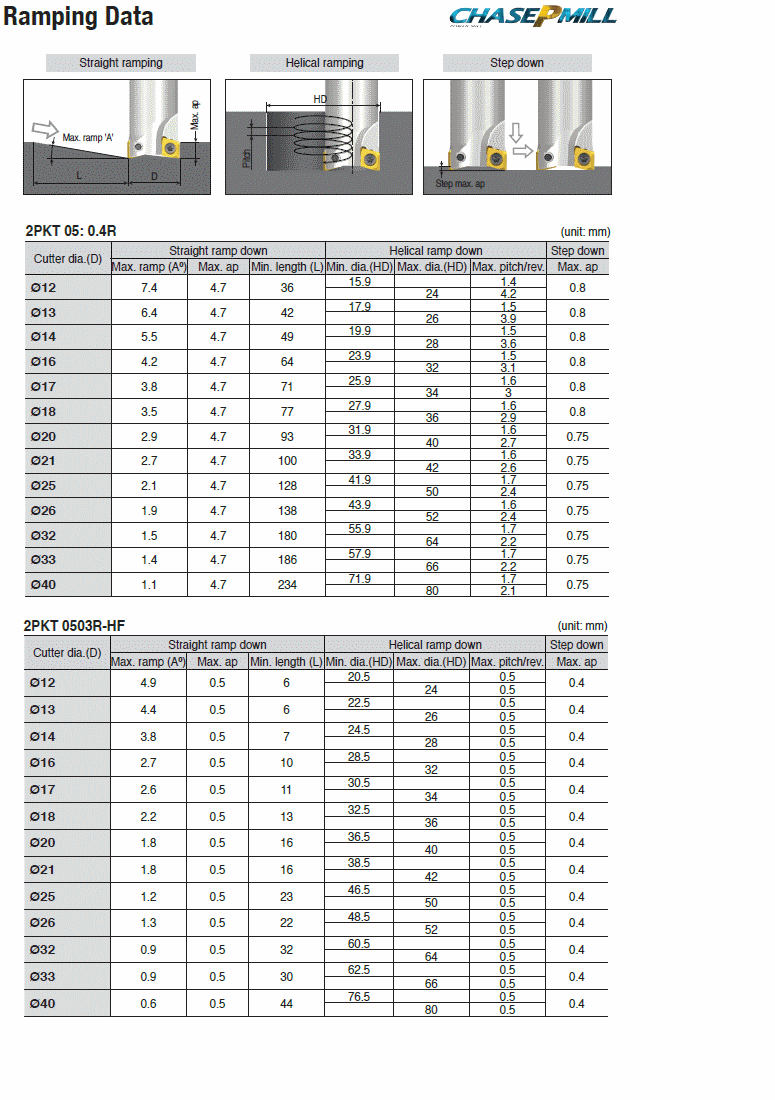 : 90° End mills with 2PKT inserts of high positive helical cutting edges