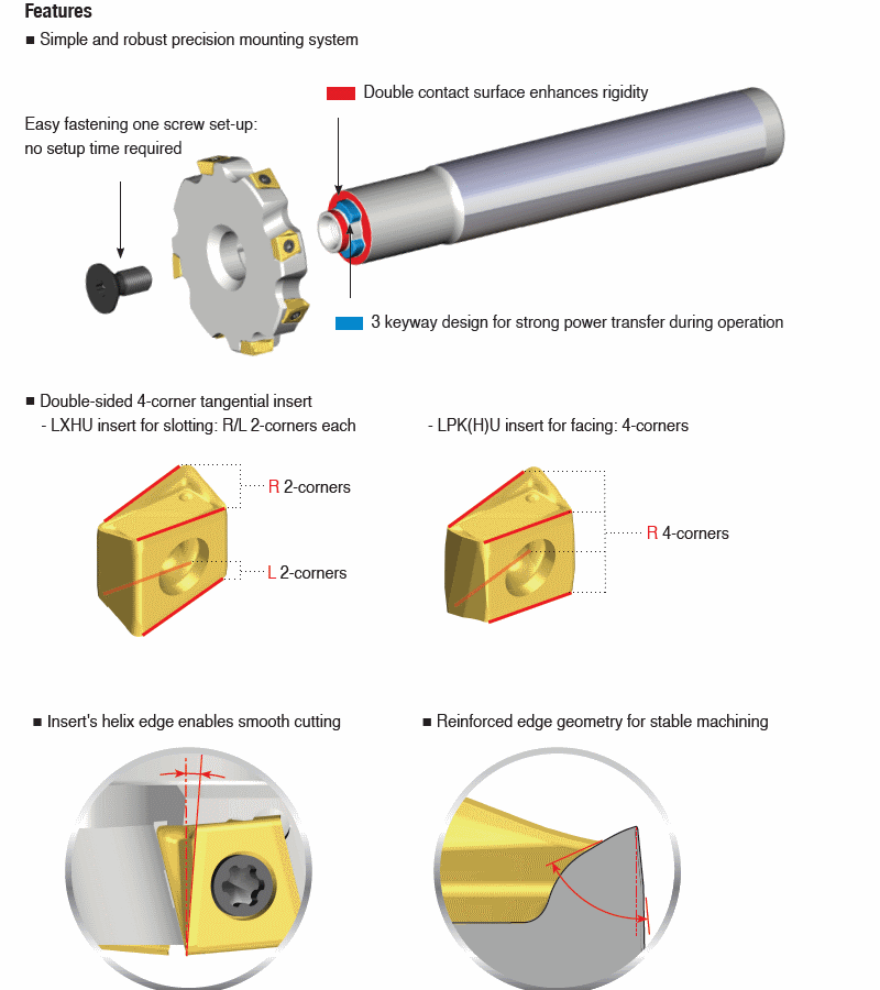 : Quick changeable face milling heads with LPK(H)U tangential inserts