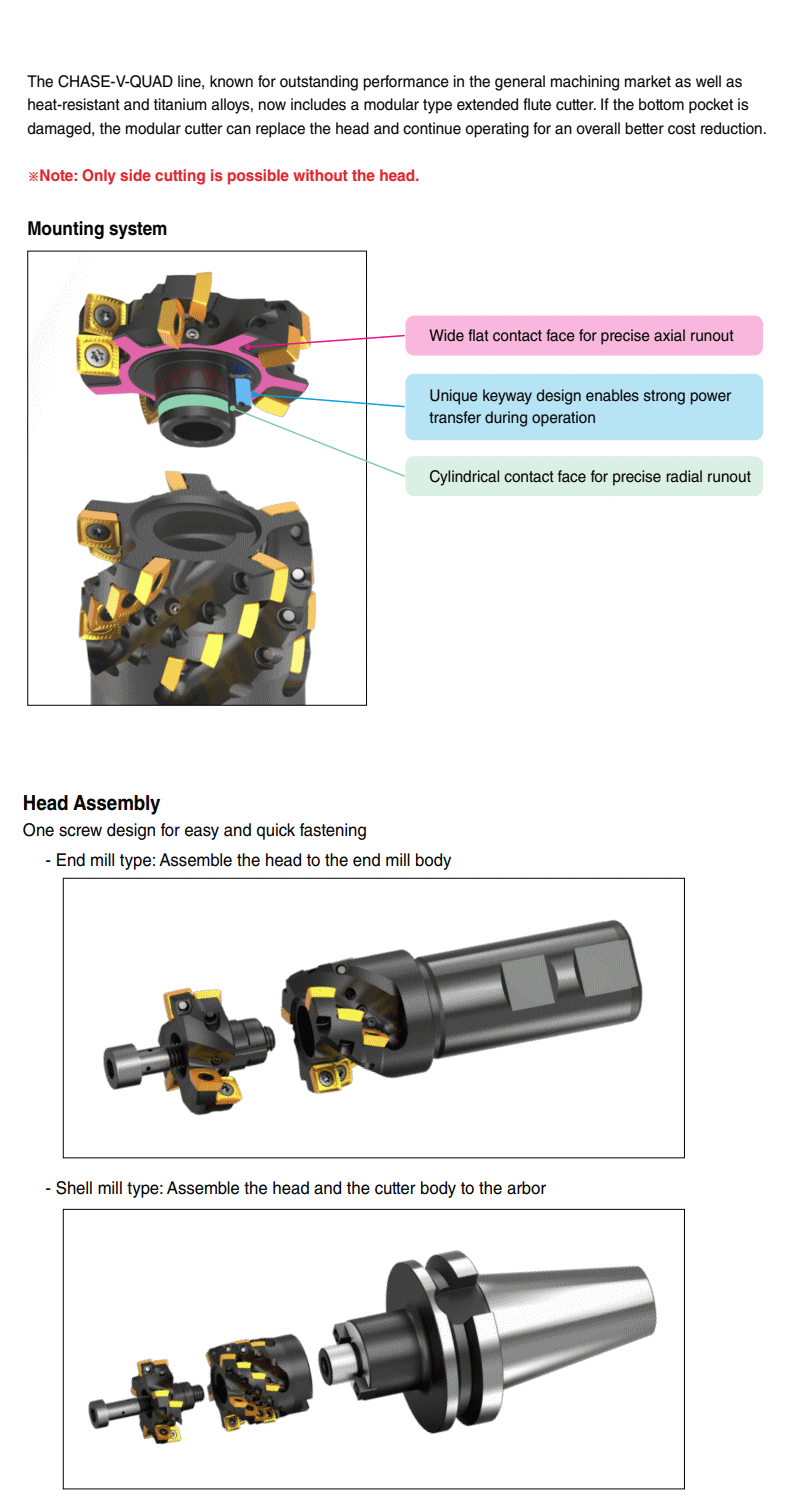 : CHASE-V-QUAD_Base units for head changeable extended flute cutter