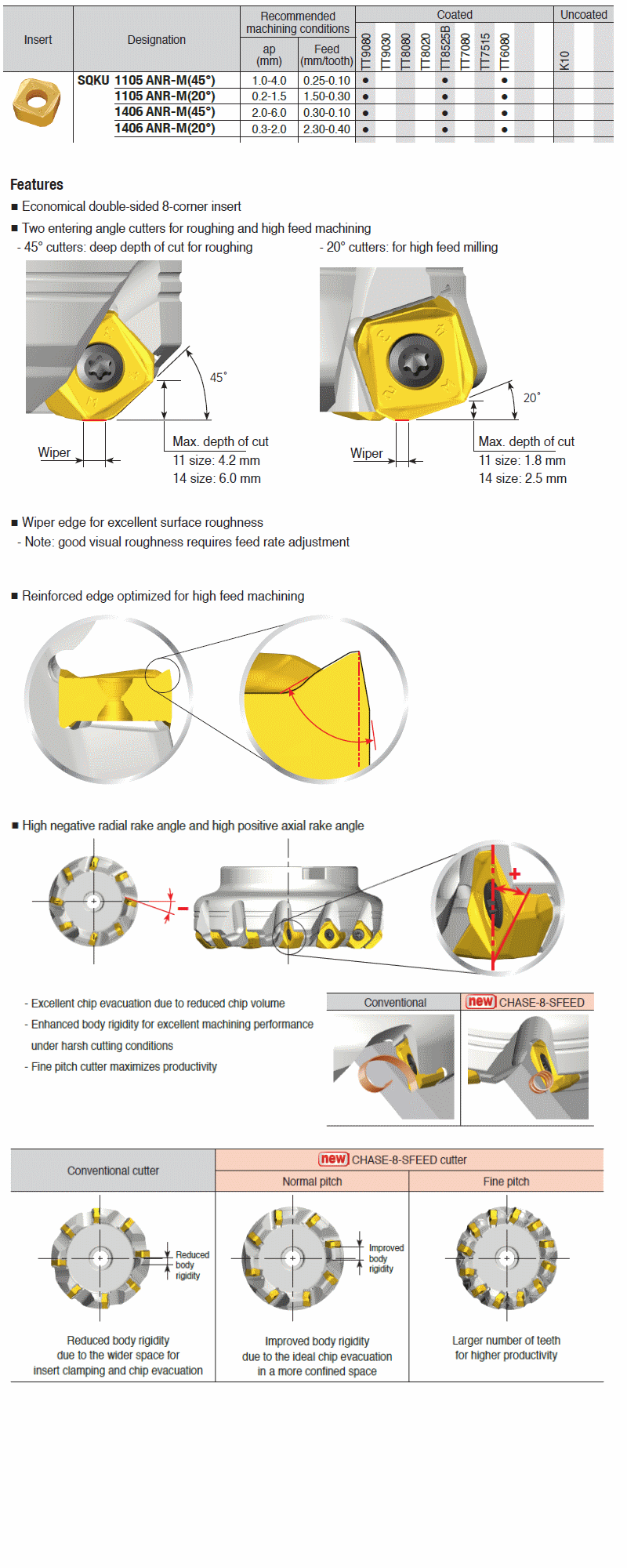 TaeguTec Cutting Tools - Metal Working Tools - Milling & Solid End mills - Inserts - KIT CHASE8SFEED-FOLLOW