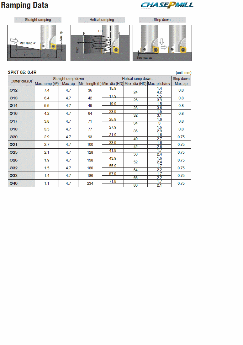 : Positive double-sided inserts with two helical cutting edges & strong double-dovetail design for stable machining of 90° shouldering