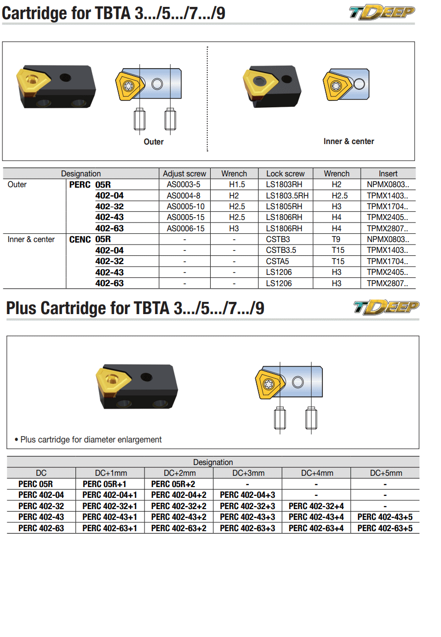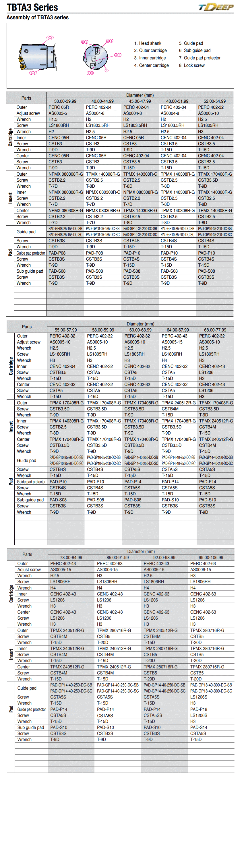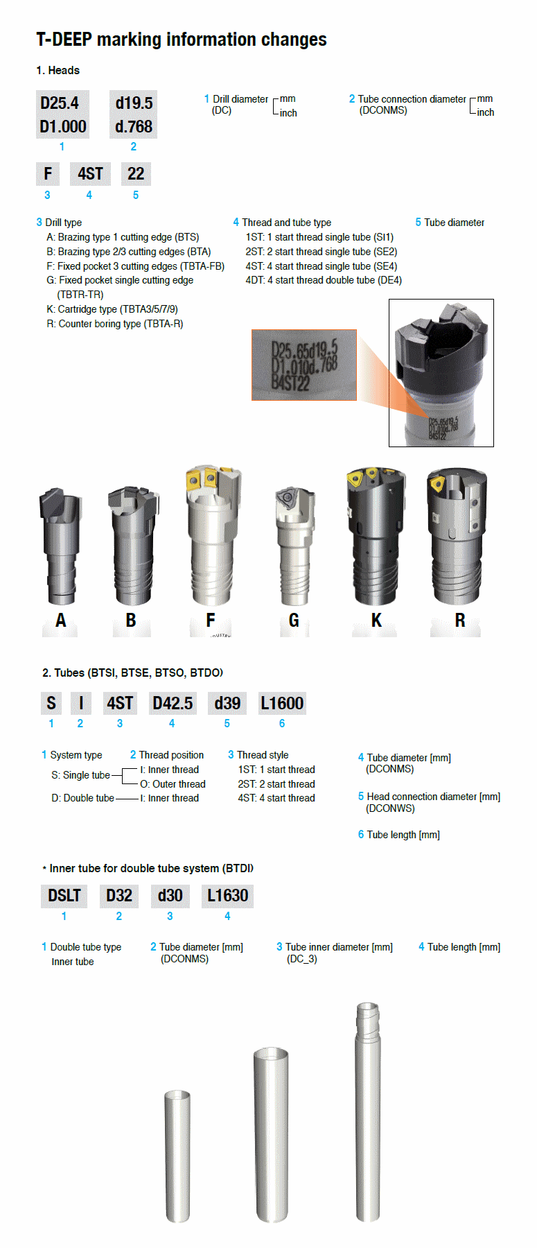 : Deep single tube drills with inner 1 start thread and cartridges covering dia 38-106.99 mm