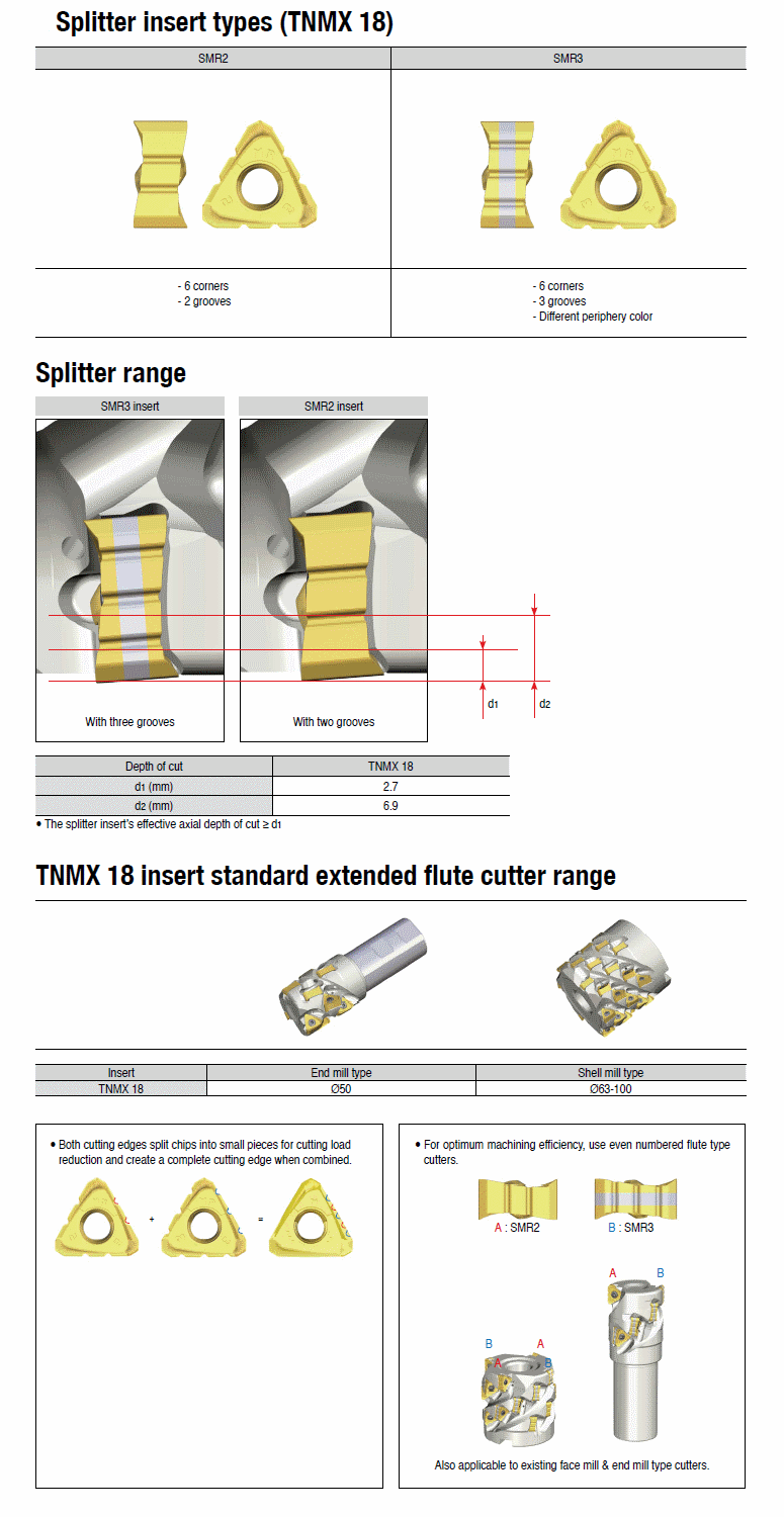 : Triangular double-sided chip splitter inserts with 6 cutting edges of TNMX 18 & two chip splitters for low cutting force & general machining & higher productivity