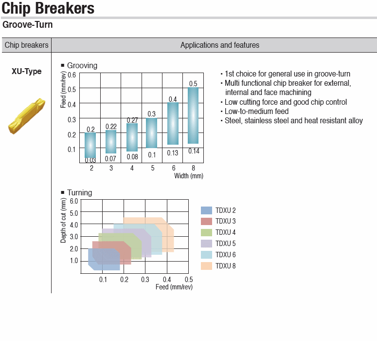 : Double-ended pressed type multi functional 1st choice inserts for general use in external, internal & face groove-turn machining